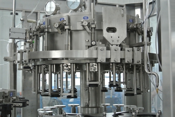 Adota o princípio de enchimento isobaric e a válvula de enchimento adota a válvula mecânica da elevada precisão. Tem vantagens da velocidade de enchimento rápida, elevada precisão no nível líquido. Adote o sistema do controlo automático de Siemens, realizando o trinity das máquinas, e controle a lavagem, o enchimento e o processo tampando e realize que começa somente ao enchimento quando há uma garrafa, se não não parará de encher-se e nenhuma garrafa quebrada. O processo do enchimento está mais limpo e puro devido a ele é duas vezes vacuumization das garrafas, e mais estável devido à operação de enchimento isobaric. Usando a bomba de vácuo e o CO2 que preparam a pressão realizar um segundo vácuo não assegure nenhuns ar e bactéria na garrafa, garanta o tempo de enchimento da qualidade e da qualidade da garantia. As cintas de enchimento do cilindro usam a caixa da sem-fim-engrenagem que vai para cima e para baixo satisfazer garrafas da altura diferente. Os interruptores de flutuador no cilindro de enchimento asseguram uma entrada líquida lisa. Consequentemente, esta máquina é a melhor escolha ideal para fábricas da cerveja ou da bebida.